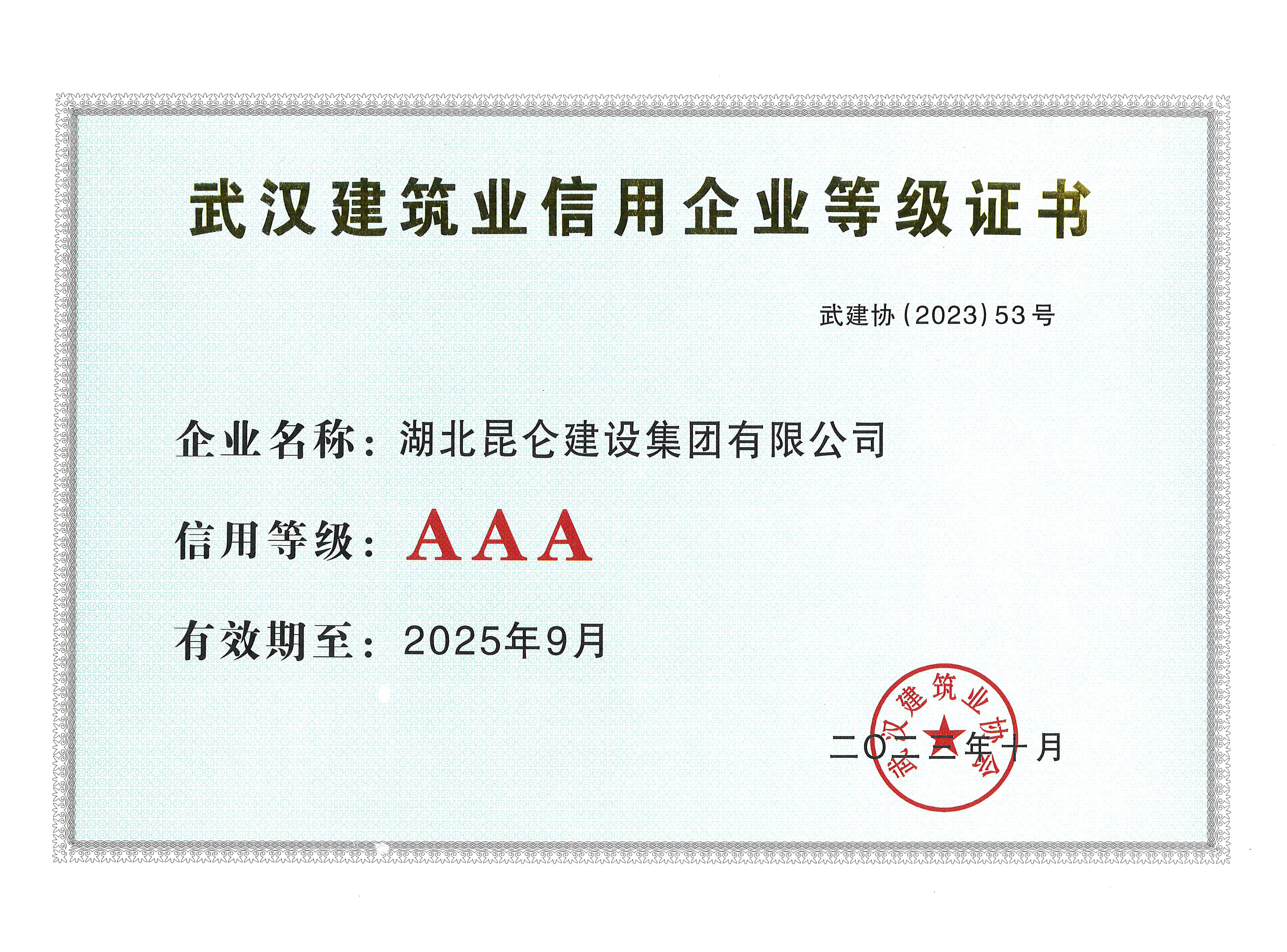 2023年武漢市AAA企業等級證書